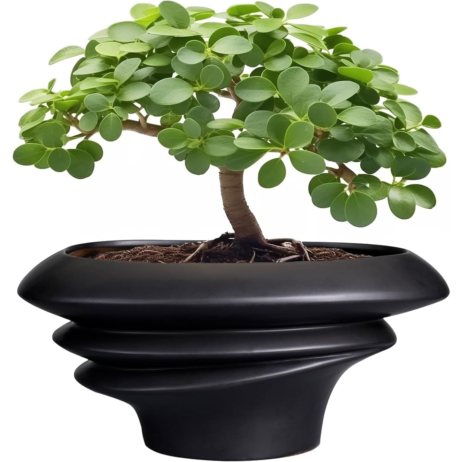 Bonsai Pot 8/12 Inch - Ceramic Succulent Planter with Drainage Hole Large Plant Pot for Indoor Plants Outdoor Modern Home Decor Black