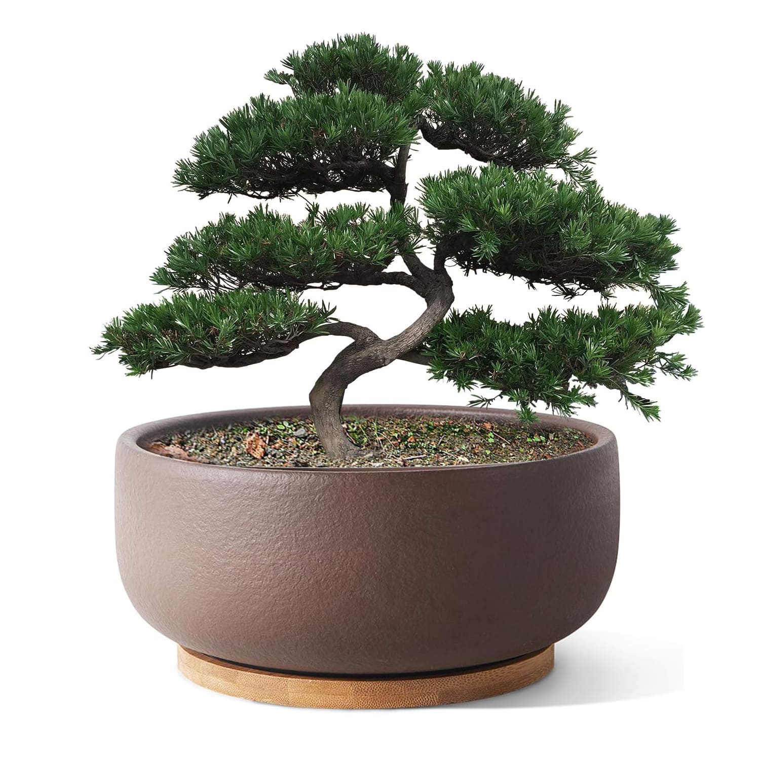 8/10" Large Terracotta Bonsai Planter with Bamboo Drainage Tray – Natural Clay, High-Temp Fired for Succulents, Cacti & Indoor/Outdoor Use