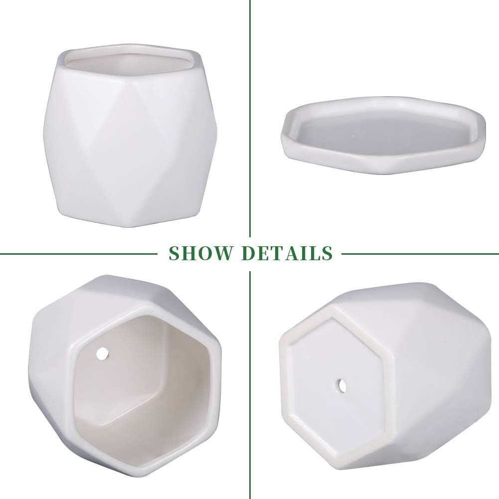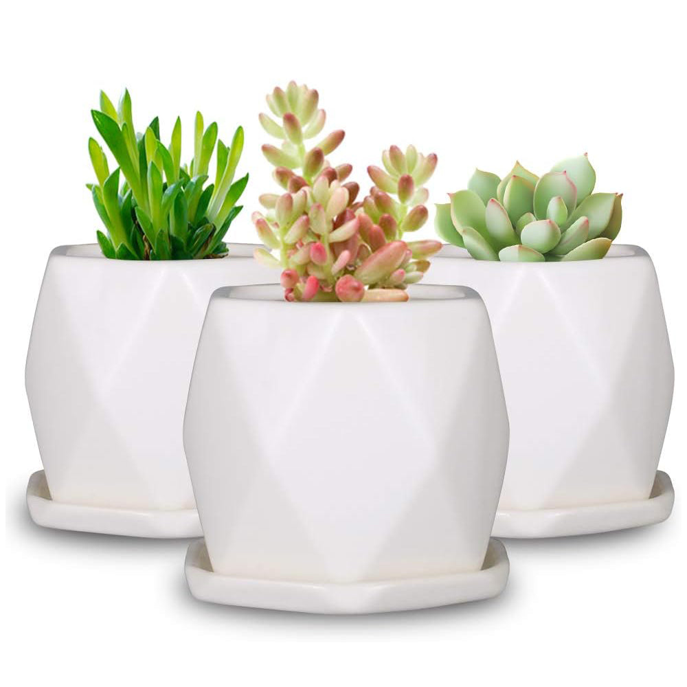 4 inch Ceramic Geometric Succulent Planter Pots with Removable Saucer,Indoor Plant Pots Set of 3