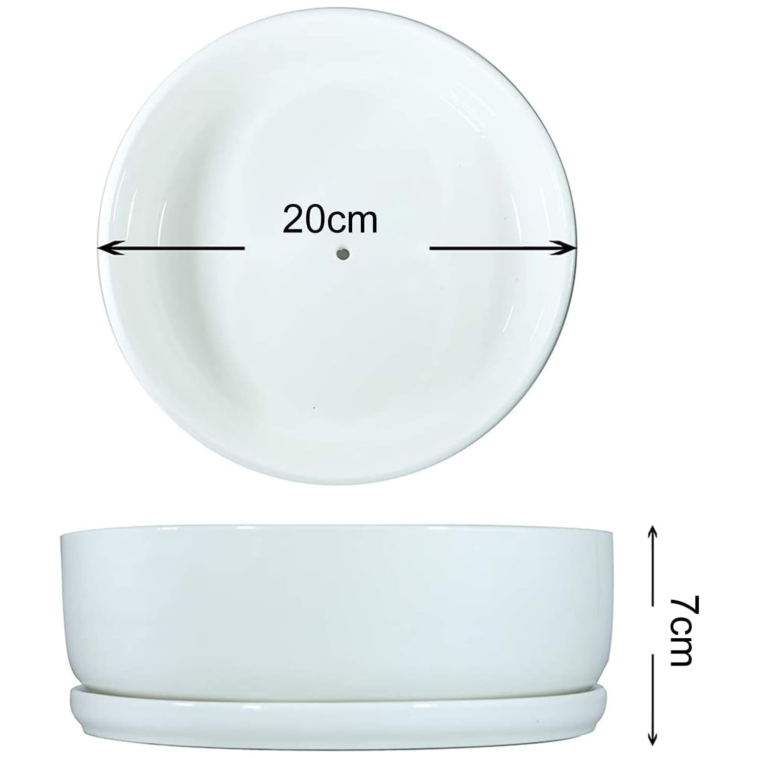 - Durable glazed finish for indoor and outdoor plants! Made of crack-resistant high temperature ceramic , this 8" x 8" x 2.84" pot features a smooth interior for excellent water retention and a fade-resistant glossy glaze —perfect for year-round use indoors or on the patio ! Built-in drainage holes paired with a 7.6" x 7.6" ceramic tray effectively collect excess water and soil, preventing root rot and keeping your space tidy while promoting healthy plant growth .